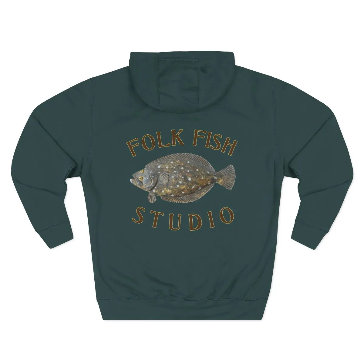 A cozy, midweight hoodie designed for makers, anglers, and small-studio creatives who like slow days and salty air. The soft three-end fleece and roomy kangaroo pocket invite long mornings sketching, tying flies, or washing brushes. A subtle embroidered logo sits on the chest while a detailed flounder illustration and hand-lettered “Folk Fish Studio” sweep across the back — a quiet badge of craft and place. The adjustable hood, reinforced neck tape, and durable double-needle seams mean this wears like a well-loved layer from the first pour of coffee to the last light of dusk.