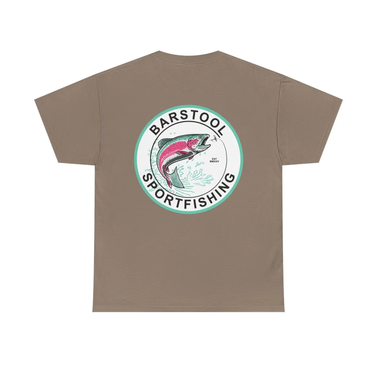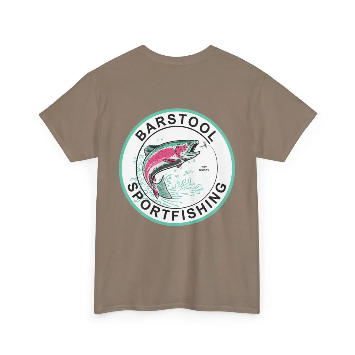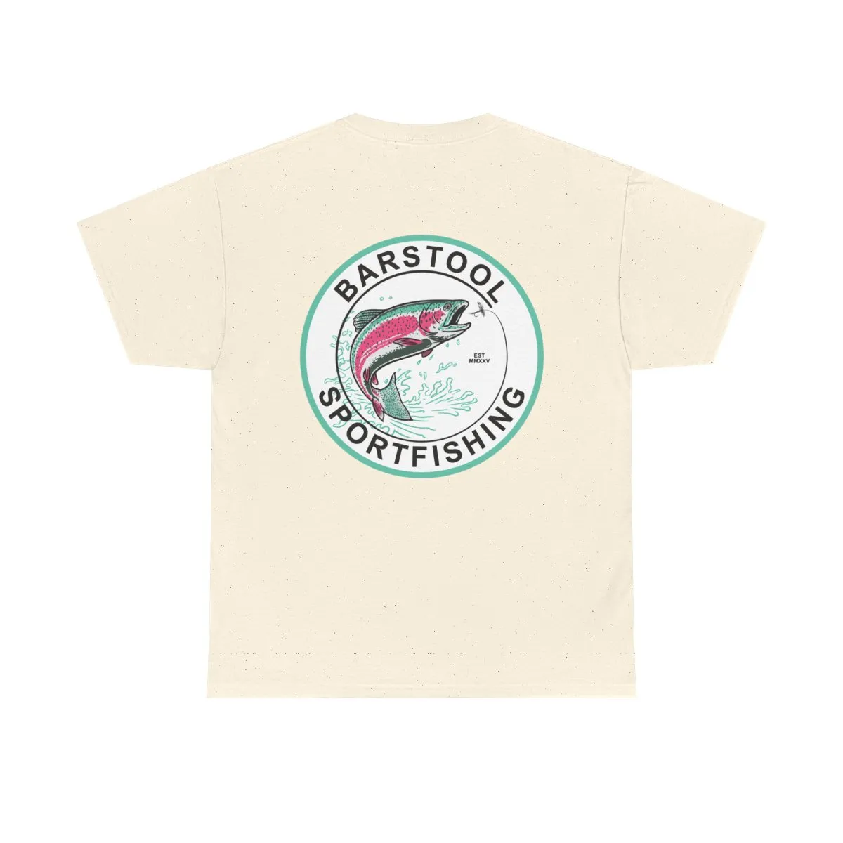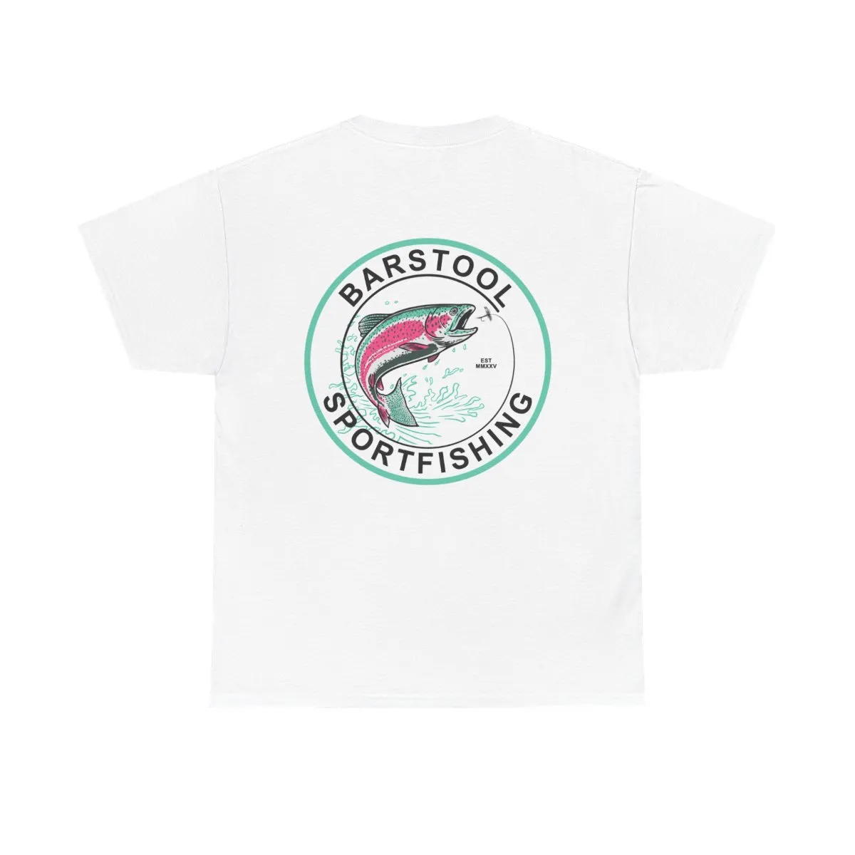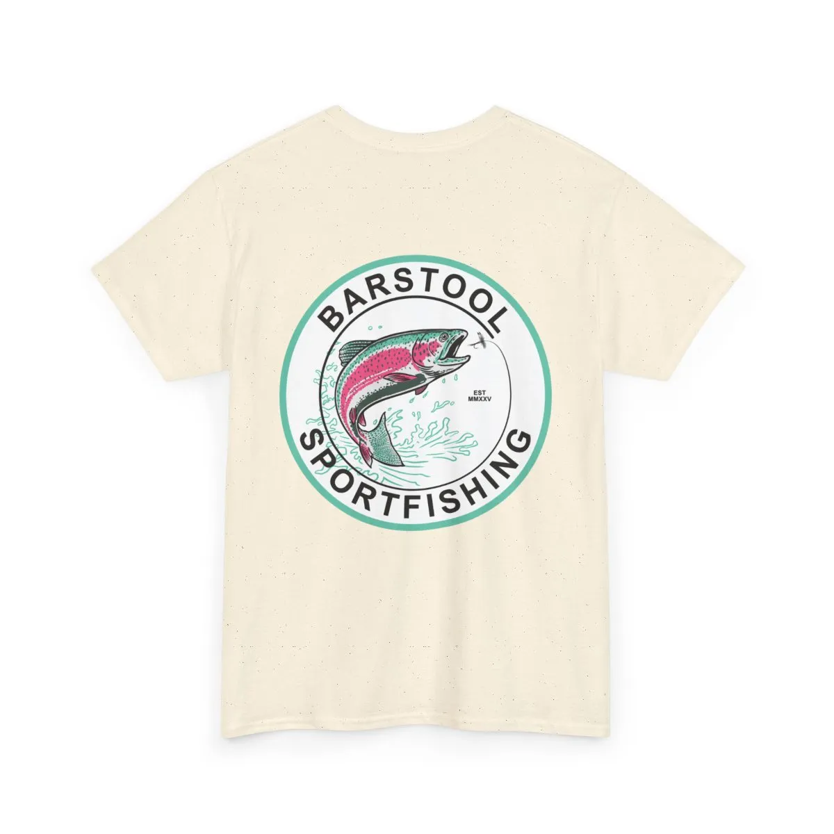 Lightweight, sturdy, and built for days on the water — this classic cotton tee carries a hand-drawn sportfishing emblem that feels like a worn-in patch from your favorite trip. The front chest hosts a subtle mini logo; the back opens with a vintage circular graphic of a leaping trout framed by clean type. Soft, breathable cotton keeps you comfortable through sun, wind, and cast after cast. Wear it with faded shorts, a trusty cap, and the same laid-back confidence you bring to the dock.