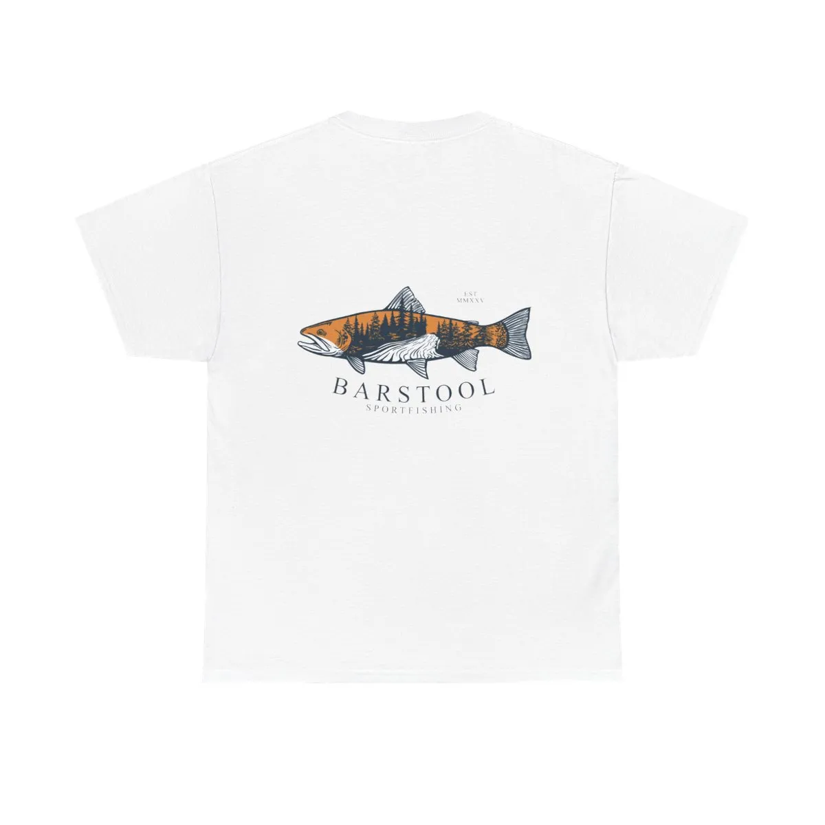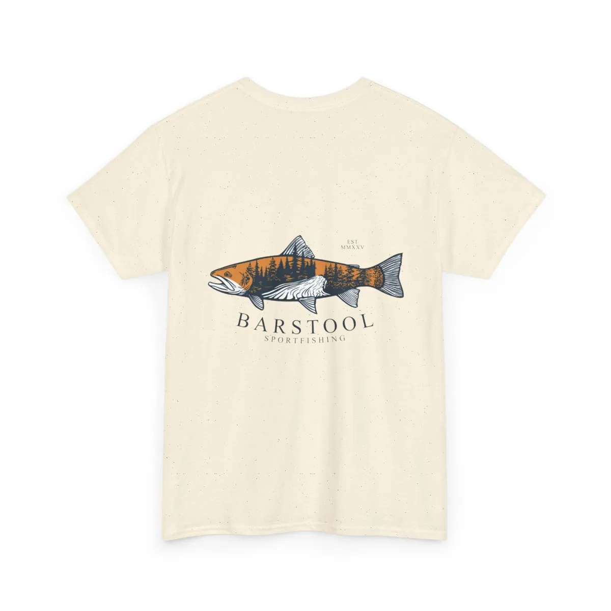 This classic cotton tee carries a quiet, outdoorsy spirit — a soft white canvas with a finely detailed fish illustration on the back and a small, subtle chest mark. Wear it to the riverbank, out with friends after a morning cast, or layered under a flannel when the air turns crisp. The fit is relaxed and familiar; the fabric has enough weight to drape nicely while keeping prints vivid and sharp. It feels like a trusted go-to: uncomplicated, comfortable, and ready for days spent chasing water, stories, and quiet sunsets.