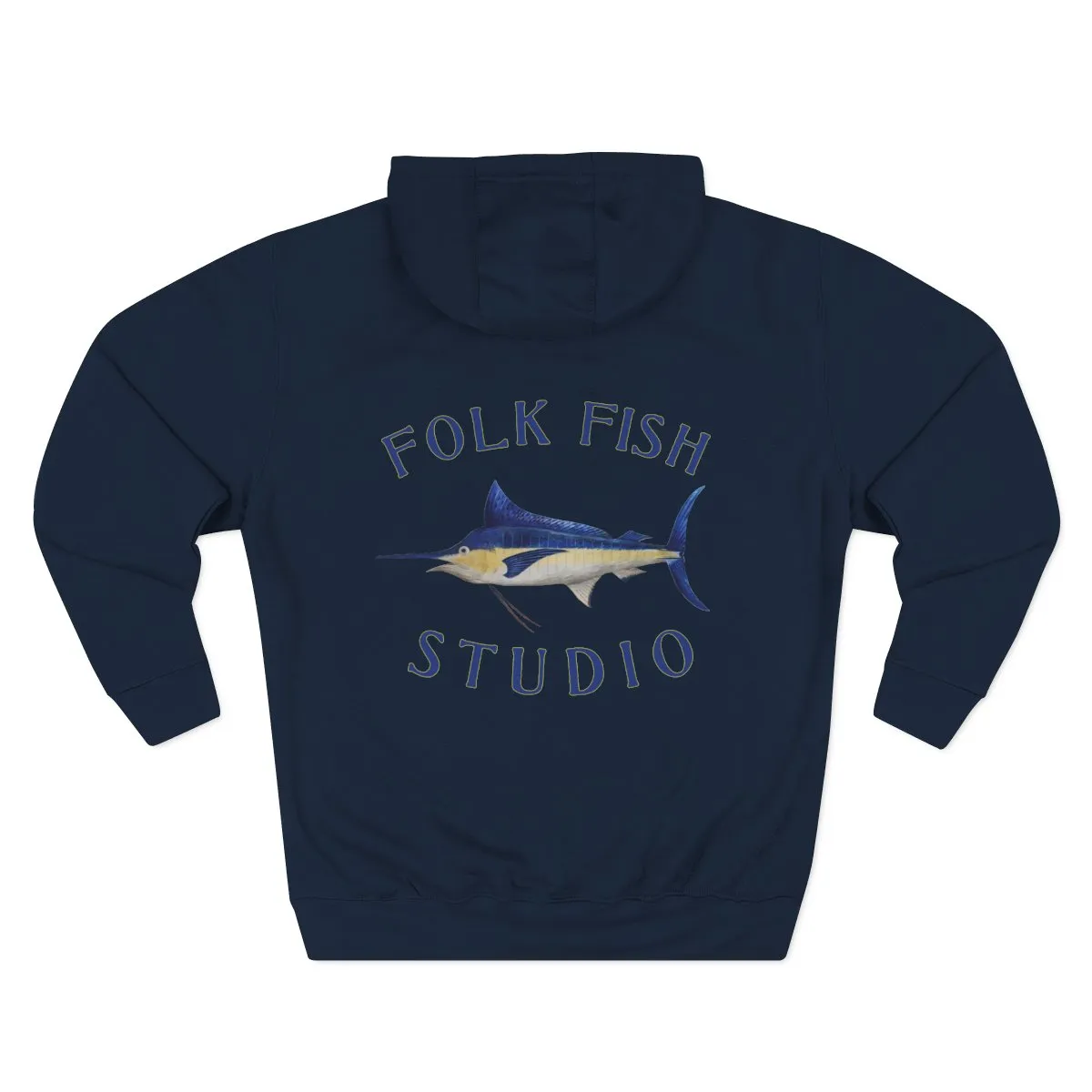 A calm, coastal hoodie that feels like an extra layer of seaside air. The soft three-end fleece and medium-heavy weight drape comfortably, while the adjustable hood and roomy kangaroo pocket hold your hands warm on misty mornings. Subtle embroidery on the chest keeps the front minimal, and the painted marlin and arched studio lettering on the back bring a quiet, artisanal ocean mood. Wear it after a day on the water or while sketching by the harbor — it moves with you and keeps its shape, wash after wash.